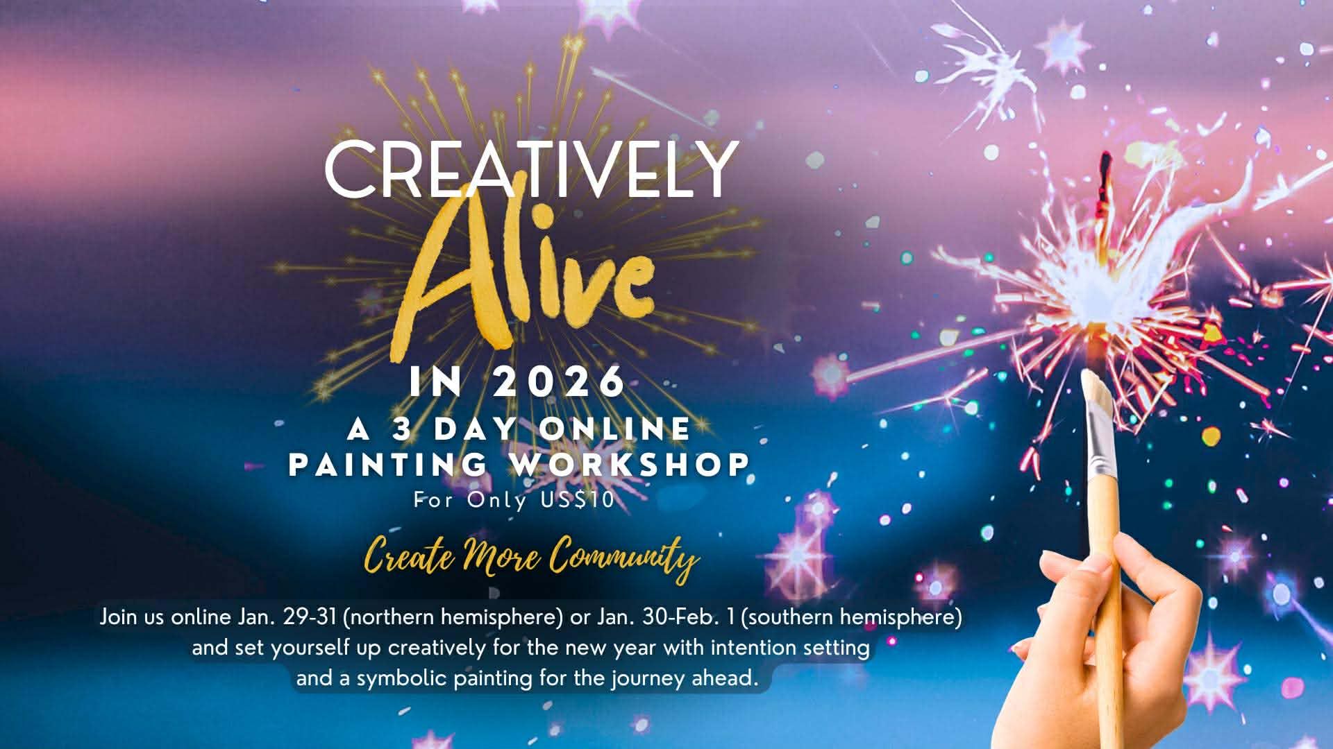 Daily live painting sessions on Zoom. Video replays will be available to view until February 27th (northern hemisphere) 28th (southern hemisphere) ... Or join the Create More Community membership for extended access.
